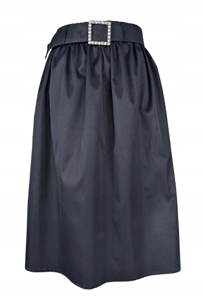 Elegancka spódnica galowa na gumie z paskiem i metalową z cyrkoniami klamrą to idealny wybór na specjalne okazje i codzienne stylizacje z klasą. Wykonana z wysokiej jakości materiału, świetnie układa się na sylwetce i zapewnia komfort noszenia przez cały dzień. Elastyczna talia na gumie dopasowuje się do figury, a praktyczne kieszenie dodają wygody. Stylowy pasek z ozdobną klamrą podkreśla talię i dodaje szyku.