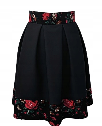 Spódnica w kontrafałdy z pasem w kwiaty