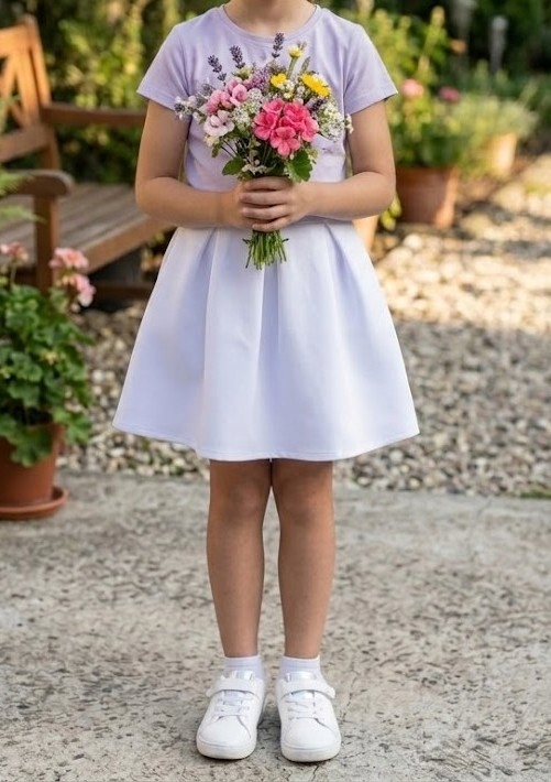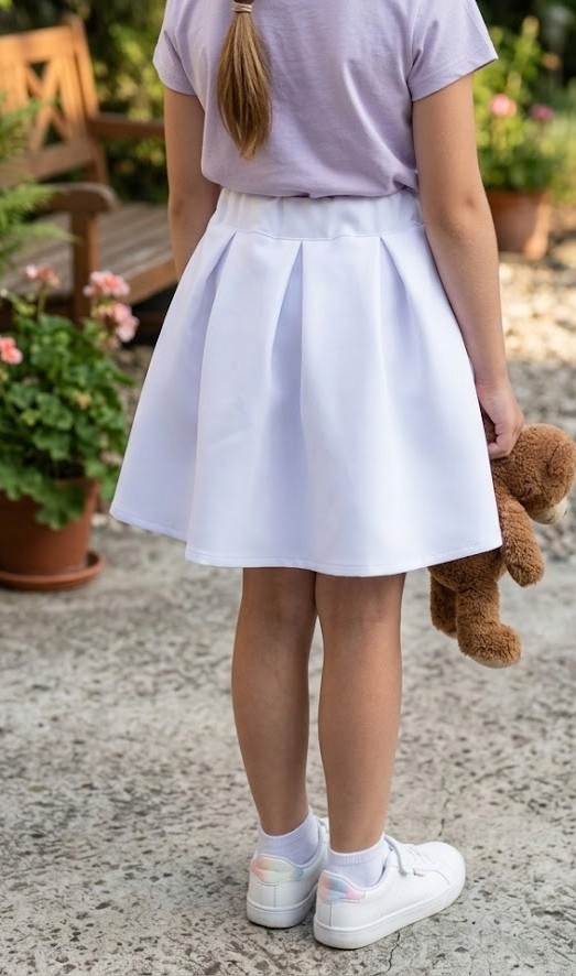 Biała spódniczka dziecięca w kontrafałdy, szyta na wymiar, to elegancka i starannie wykonana propozycja dla dziewczynki, idealna na wyjątkowe okazje oraz do bardziej formalnych stylizacji.