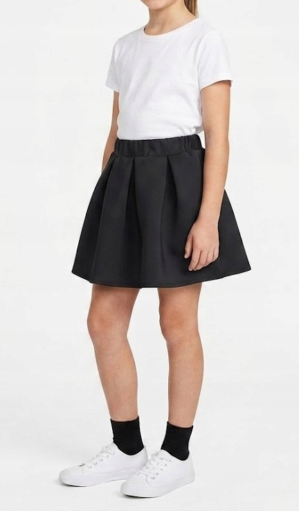 Czarna spódniczka dziecięca w kontrafałdy, szyta na wymiar, to elegancka i starannie wykonana propozycja dla dziewczynki, idealna na wyjątkowe okazje oraz do bardziej formalnych stylizacji.