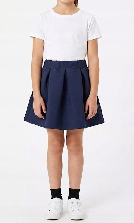 Granatowa spódniczka dziecięca w kontrafałdy, szyta na wymiar, to elegancka i starannie wykonana propozycja dla dziewczynki, idealna na wyjątkowe okazje oraz do bardziej formalnych stylizacji.