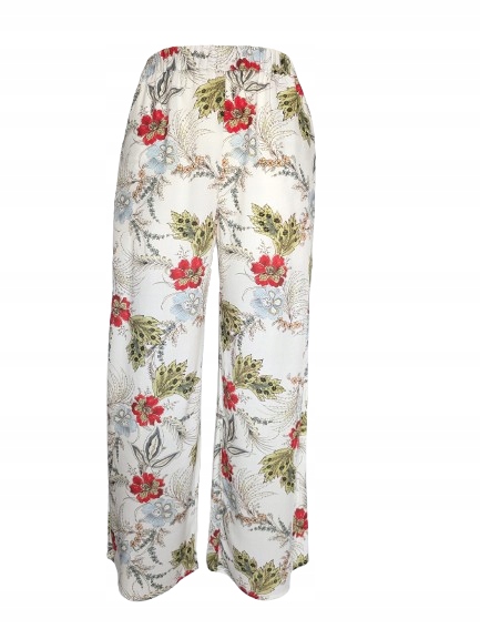 Całość dopełnia wyrazisty kwiatowy wzór, który nadaje spodniom romantycznego i letniego wyrazu. Idealnie sprawdzą się zarówno na co dzień, jak i na wakacyjne wyjazdy — można je stylizować z prostym topem, koszulą lub lekką bluzką.
