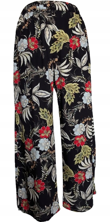 Spodnie palazzo z wiskozy na gumie z kieszeniami w kwiaty to stylowy i wygodny element garderoby, który łączy w sobie kobiecość, lekkość i funkcjonalność. Oto ich opis: